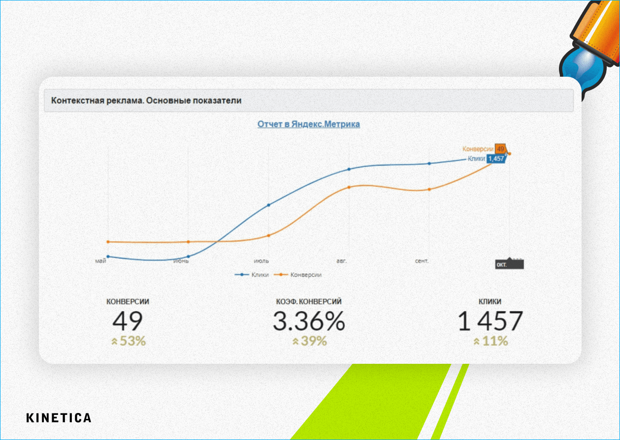- Увеличили количество конверсий в 1,5 раза.