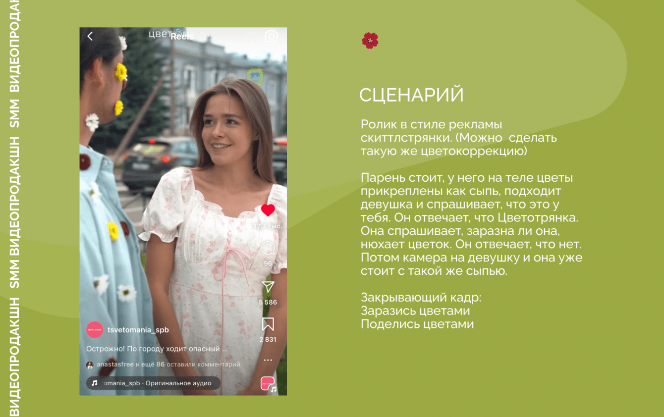 Сеть цветочных магазинов в Санкт-Петербурге с 16,6 тыс. подписчиков в Instagram. Задача клиента — привлечь новую аудиторию, укрепить эмоциональную связь с текущими подписчиками и усилить позиционирование бренда.