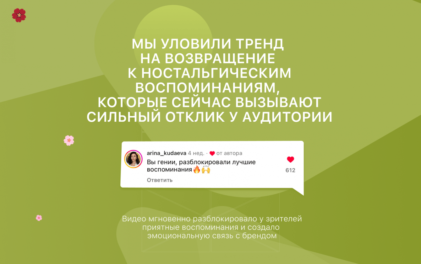 Мы ориентировали контент на миллениалов, подчеркивая культурные маркеры ностальгии по 2000-м, которые вызывают высокий отклик.