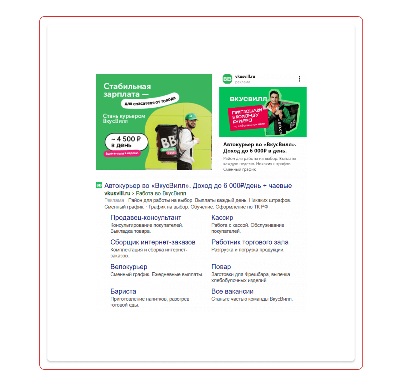 Примеры объявлений, которые помогли нарастить объём откликов и показать преимущества работы во «ВкусВилл».