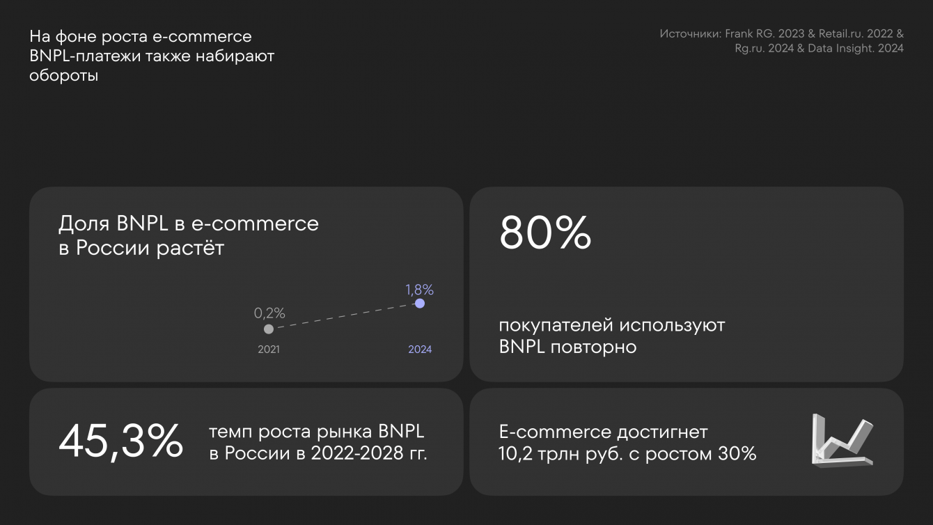 Так, мы пришли к тому, чтобы интегрировать BNPL в поведение пользователей как естественный шаг в процессе покупки.