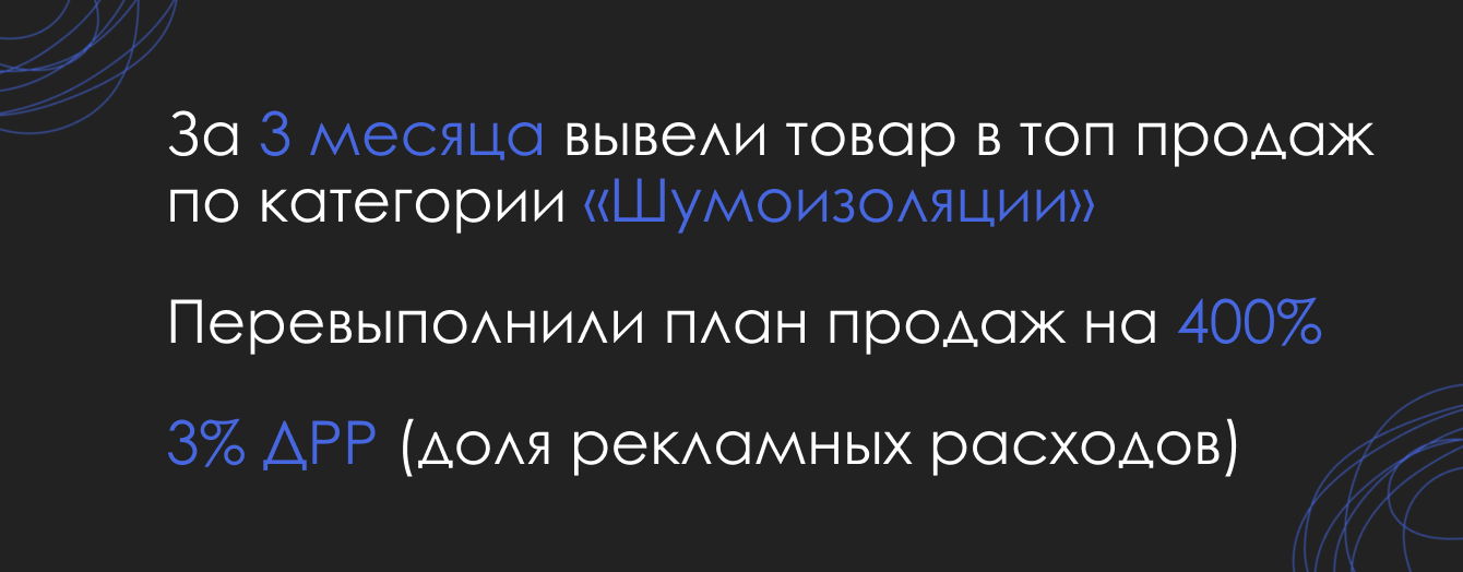 Мы эффективно сработали на рынке низко маржинального эконом-продукта, где основной акцент делается на оборотах. За короткий срок мы смогли вывести продукт в ТОП и обойти конкурентов по аналогичным товарам. Это успех!