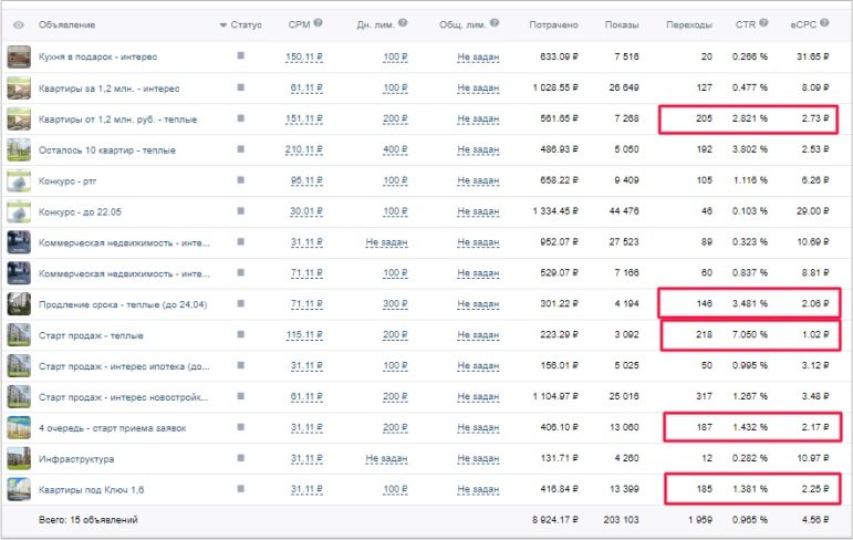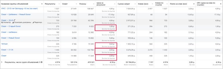 Наиболее удачные объявления давали нам заявки по 61,97 ₽