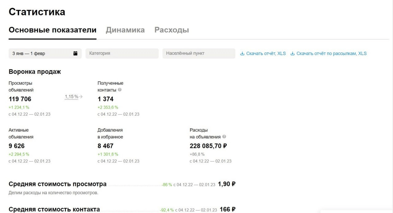 Разместили целых 11000 объявлений в двух категориях и четырех направлениях. Для выделения лучших объявлений в каждом городе мы провели поднятие на 15 позиций в результатах поиска на месяц.