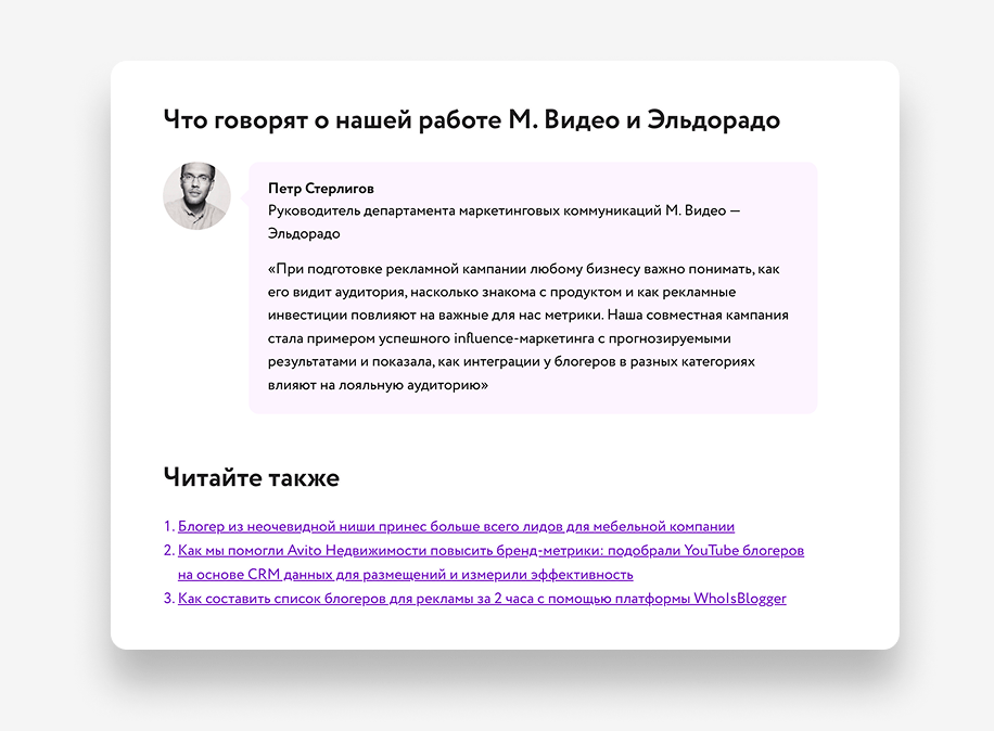 В конце каждого добавляли отзыв и ссылки на похожие материалы.