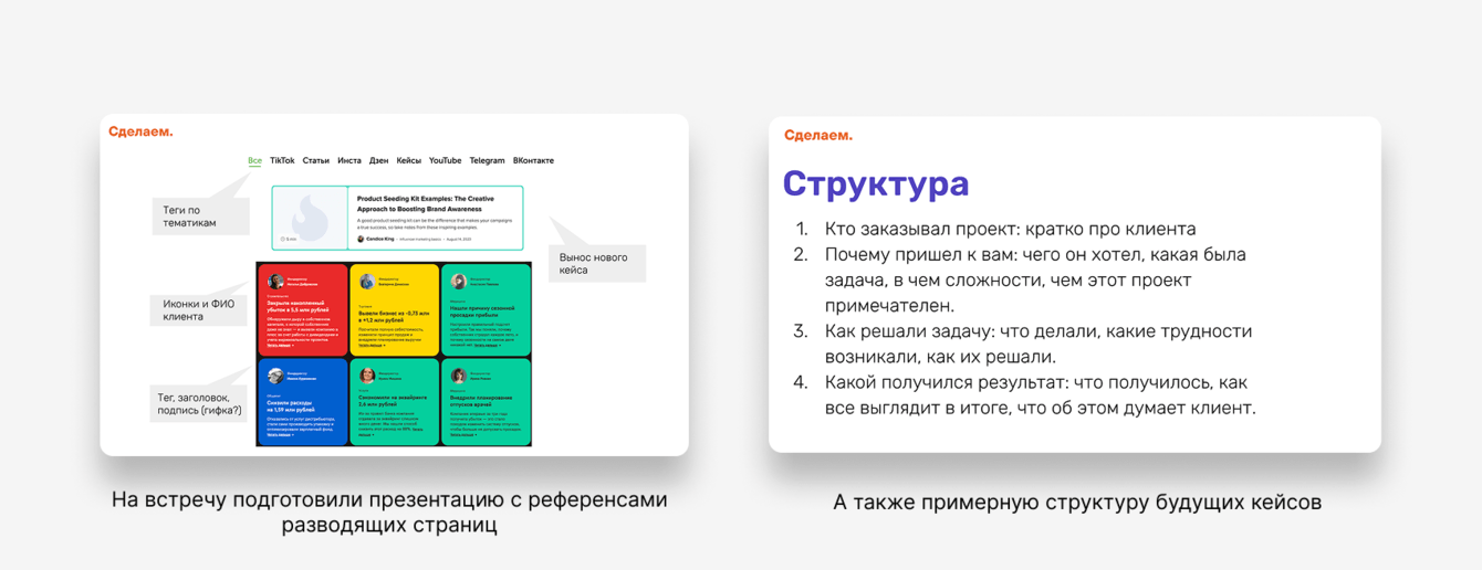 UPD: Позже процесс упростили: начали брать материалы из клиентских презентаций, чтобы сократить время согласования.