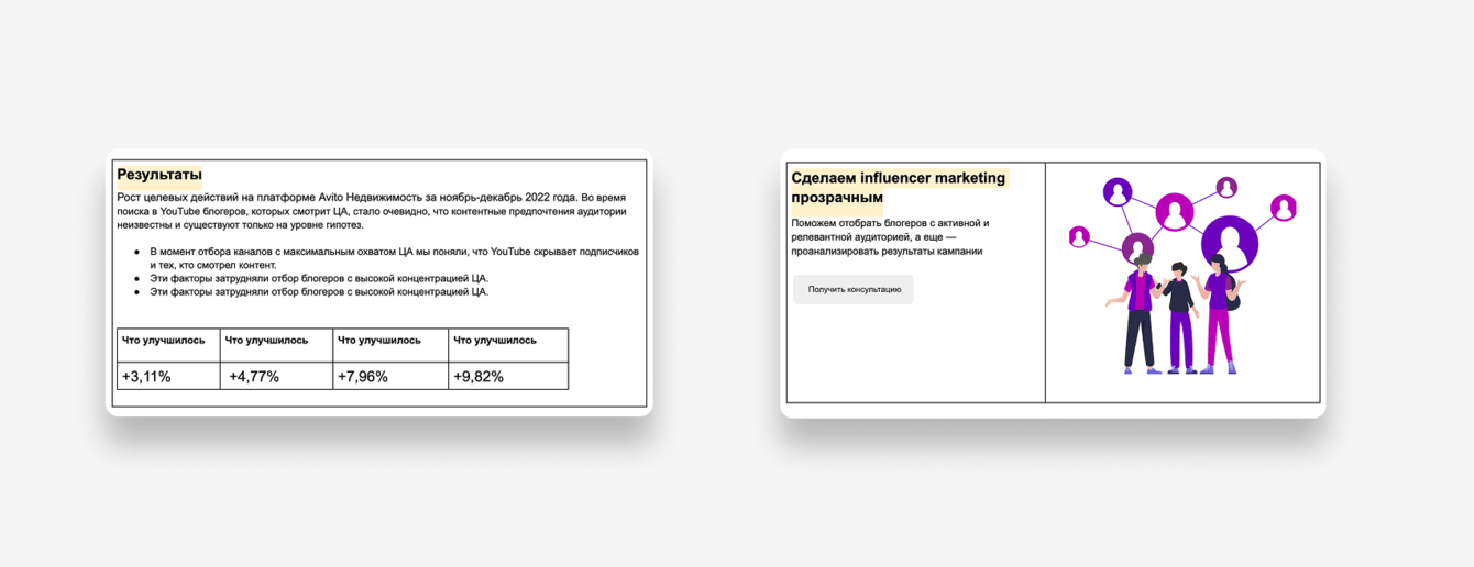 В будущем авторы просто брали за основу этот шаблон и заполняли его по фактуре с презентации или встречи с клиентом. Так мы смогли сэкономить время на работу и быстрей приносить готовые тексты.