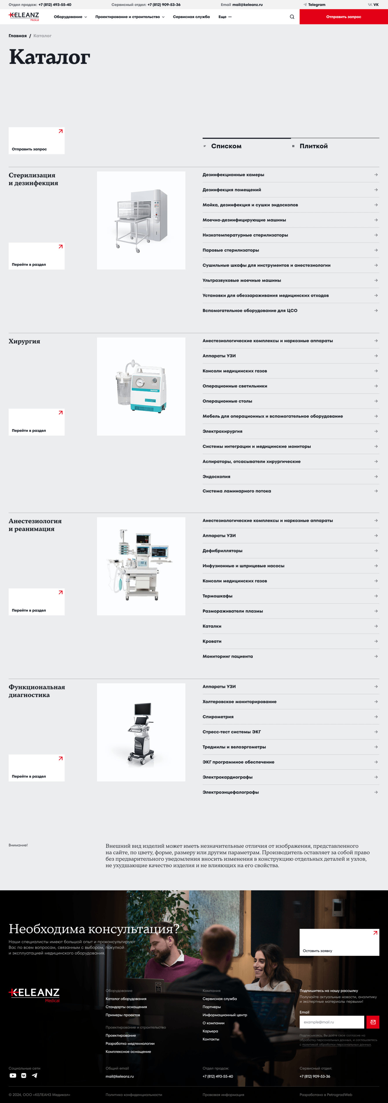 Создать современный сайт с большим каталогом медицинского оборудования, который будет корректно работать даже при отсутствии иллюстраций, и подчеркнёт экспертность компании.