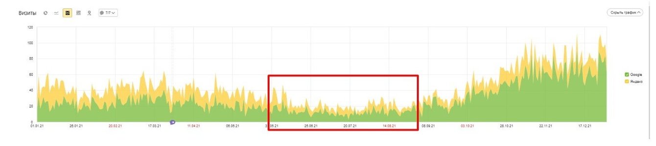 На данном этапе рассмотрим результаты анализа поискового трафика вне сезона.