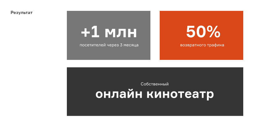 Проведя анализ трендов на рынке, мы быстро определили новое направление: онлайн кинотеатр, именно эта ниша могла показать рост в период пандемии.