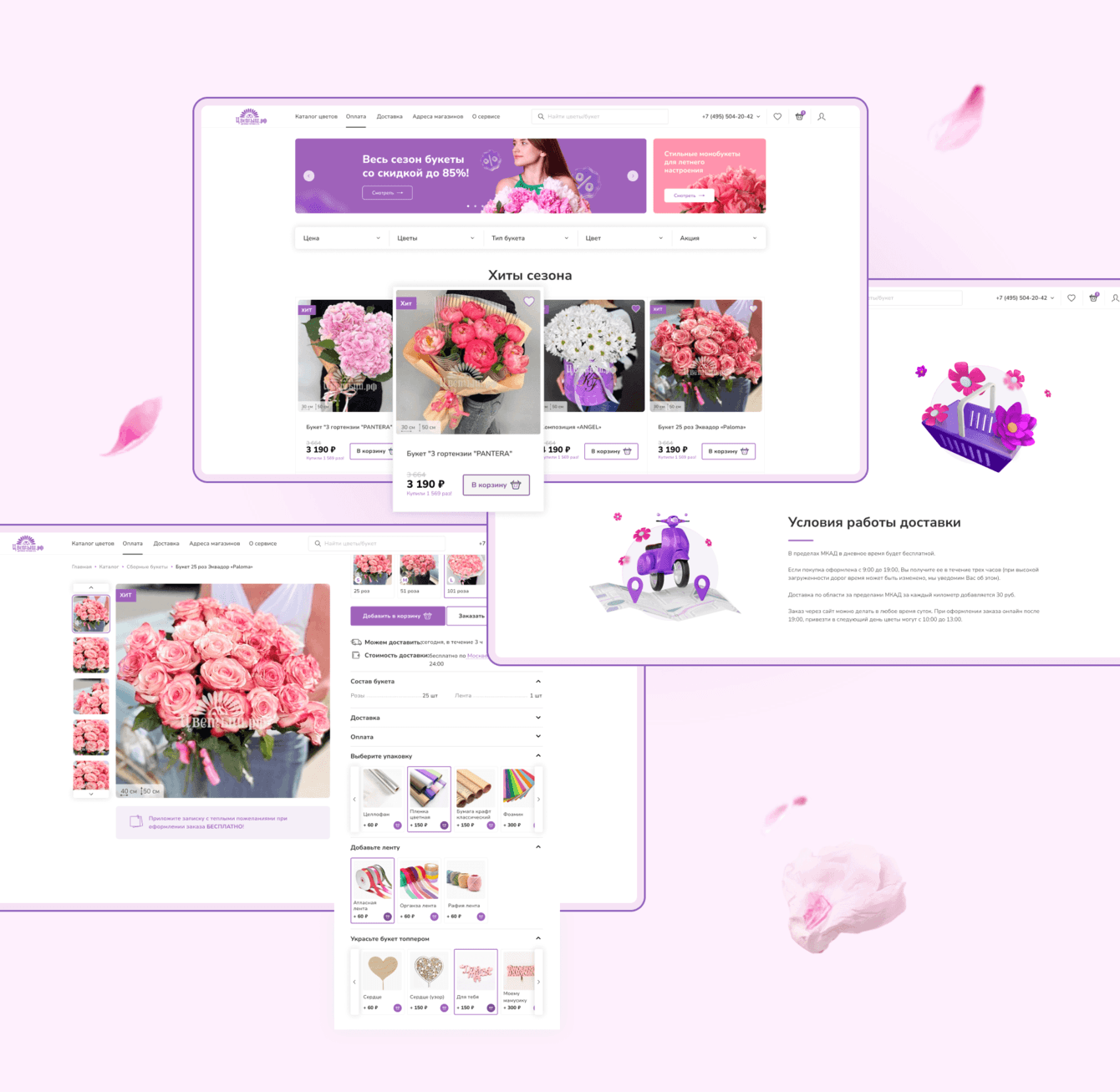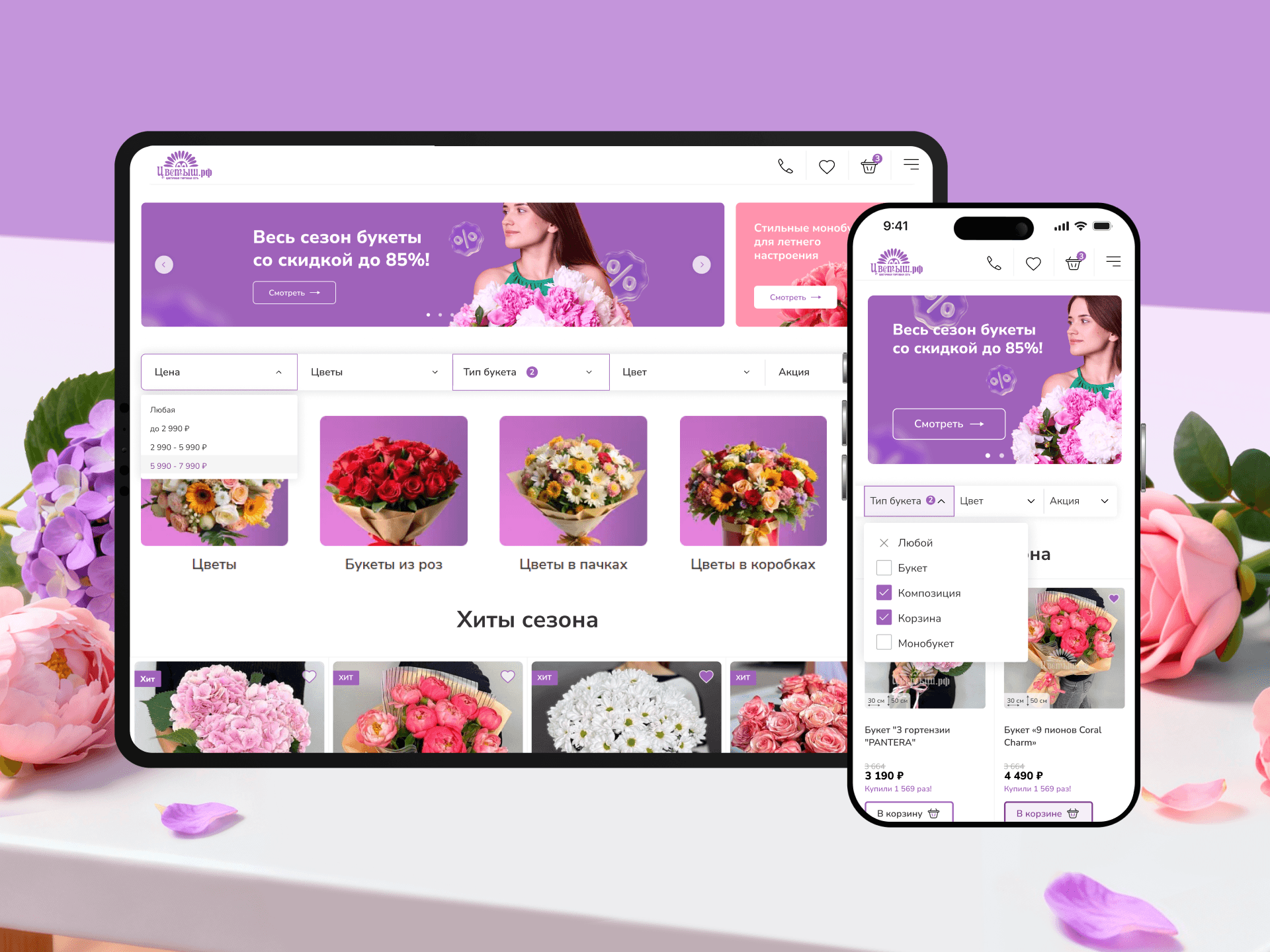 Стратегию проработали, переходим к тактике. Первым под нож пошел фасад: устаревший дизайн и запутанный пользовательский путь. Где-где, а в цветочном бизнесе эстетика — это 90% успеха.