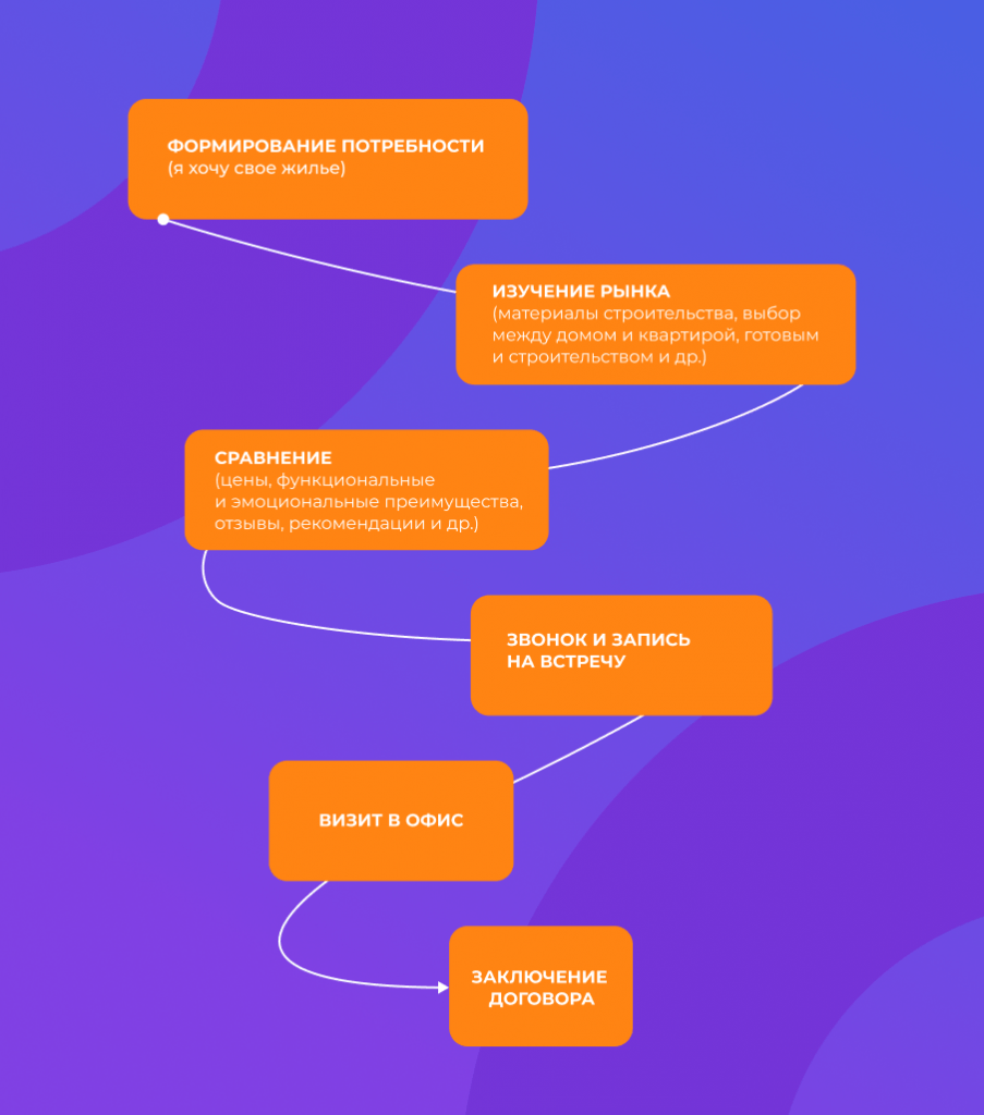 Сквозная аналитика помогает отследить все точки касания с пользователем. Например, если он несколько раз звонил, затем подписался на группу VK, а в итоге оставил заявку на строительство через форму на сайте — мы увидим весь этот путь. Это важно, поскольку не все каналы становятся финальной точкой принятия решения, однако они необходимы для итоговой конверсии.
