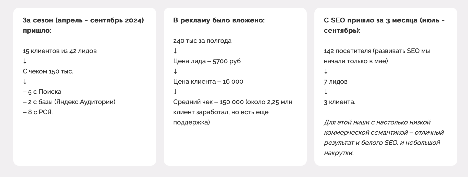 Вывод: как работать с редкими услугами в нестандартной, сезонной нише?