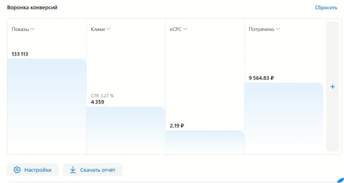 Отметим, что внутренняя реклама на WB работала хорошо и стабильно. Заказчик поставил цель добиться стоимости клика ниже, чем на WB.