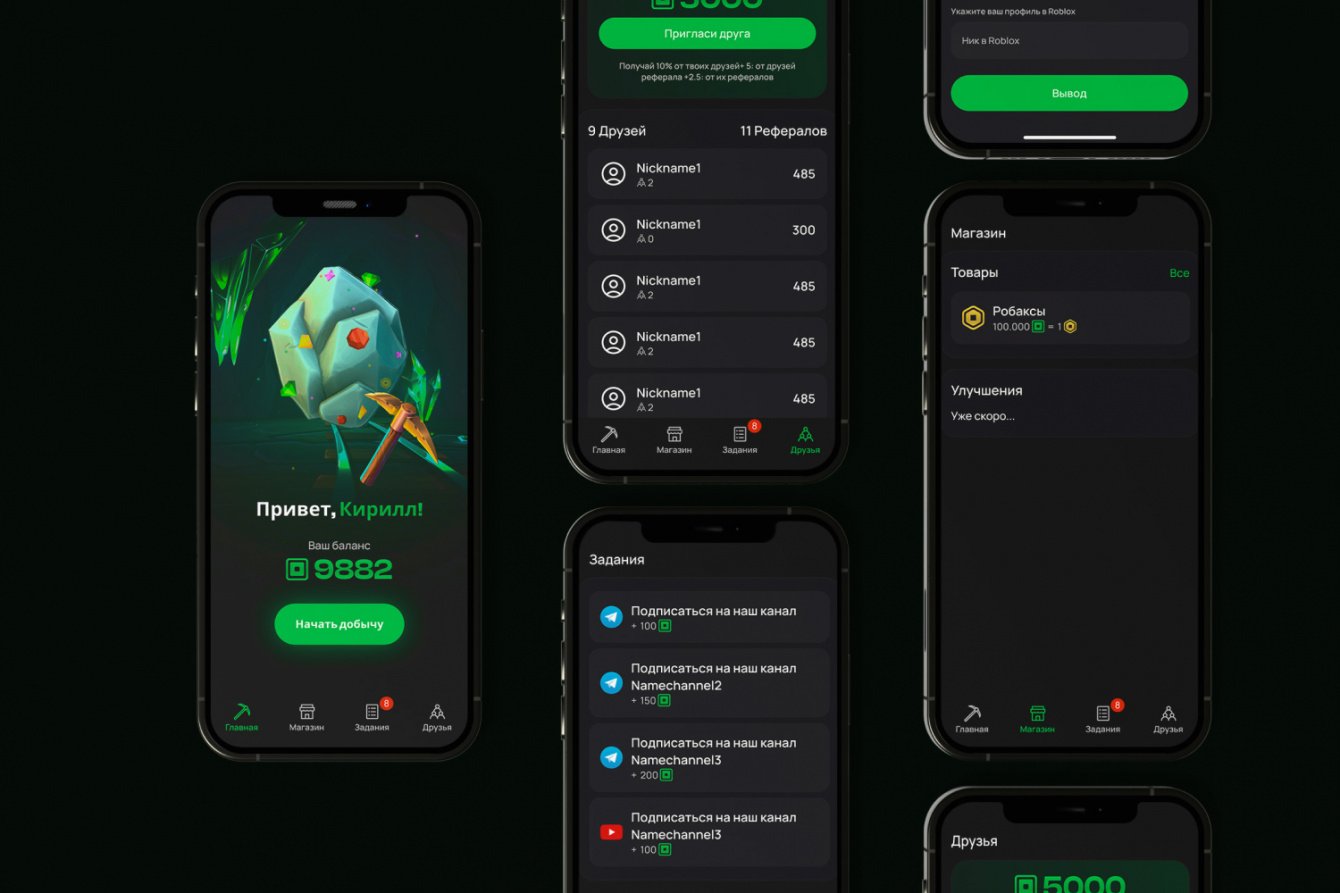 В результате работы мы создали многофункциональное телеграм веб-приложение для удобного майнинга внутриигровой валюты и её обмена на Robux.