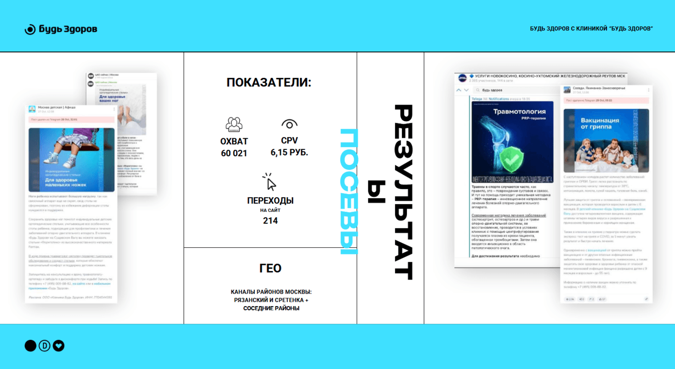 Целью рекламной кампании являлось развить клиниики в ЮВАО и ЦАО Москвы, а также повысить знания о бренде у жителей ближайших районов.