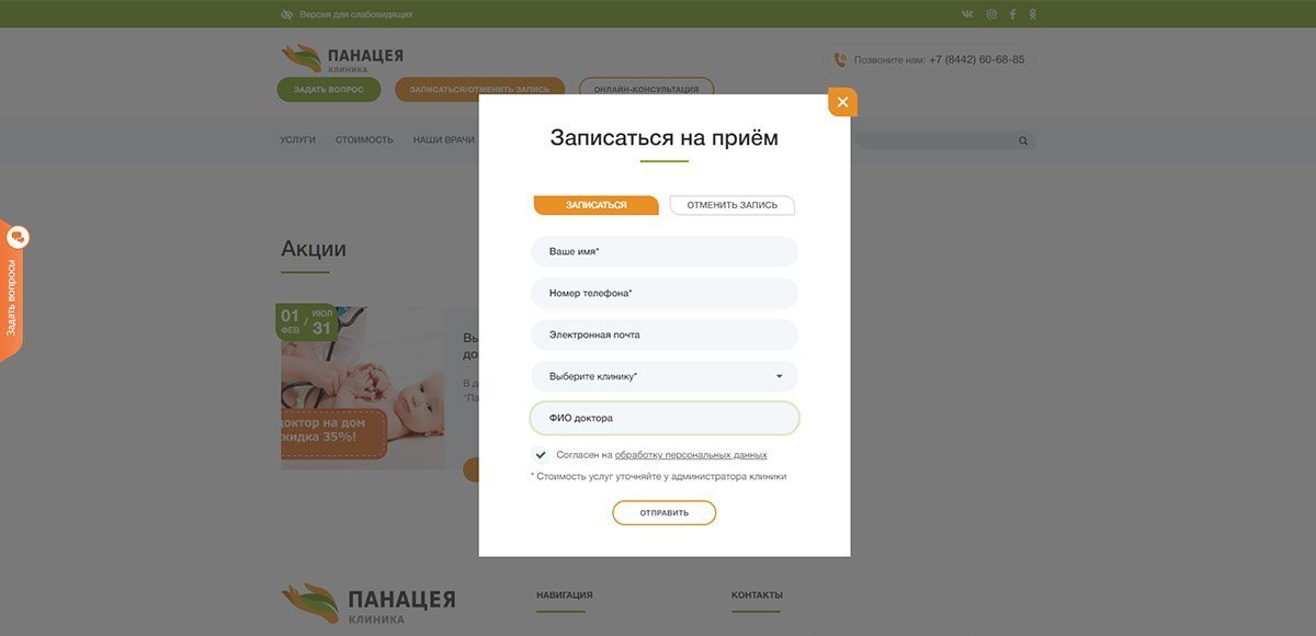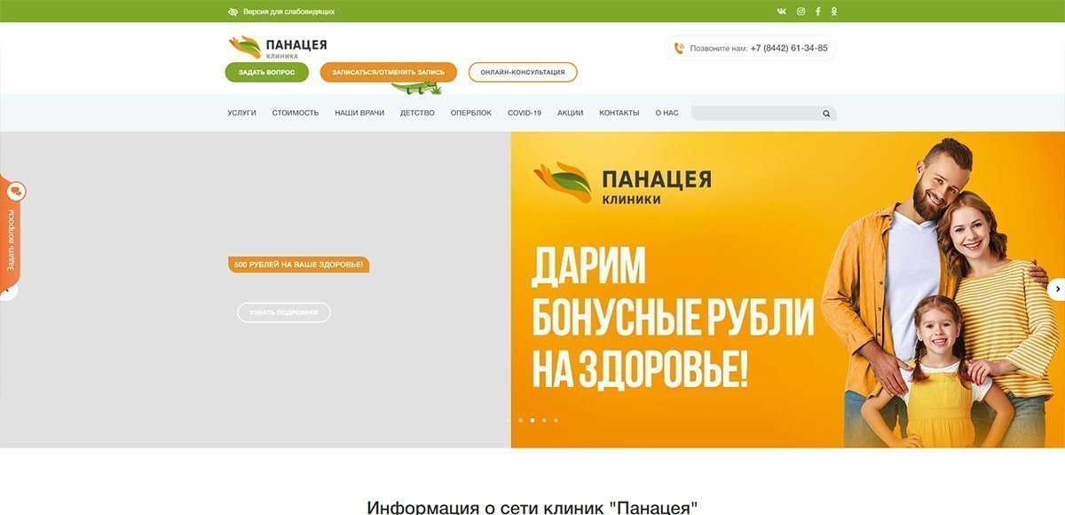Медицинские сайты — это один из наших профилей. Мы создали с нуля более 10 подобных проектов со сложной структурой, личными кабинетами, проработкой всех законодательных нюансов. С клиникой "Панацея" мы также сотрудничаем много лет.