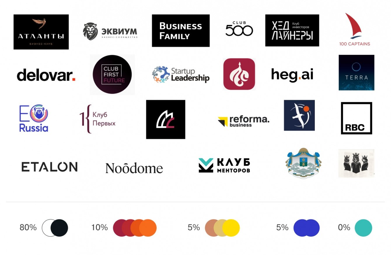 Я изучил айдентики других бизнес-сообществ, включая Эквиум, Атланты, Клуб 500 и другие. Многие клубы опираются на мощные символы, такие как лев, парус или медведь. Они добавляют эмоциональности и ассоциации с силой, что делает бренды более запоминающимися.