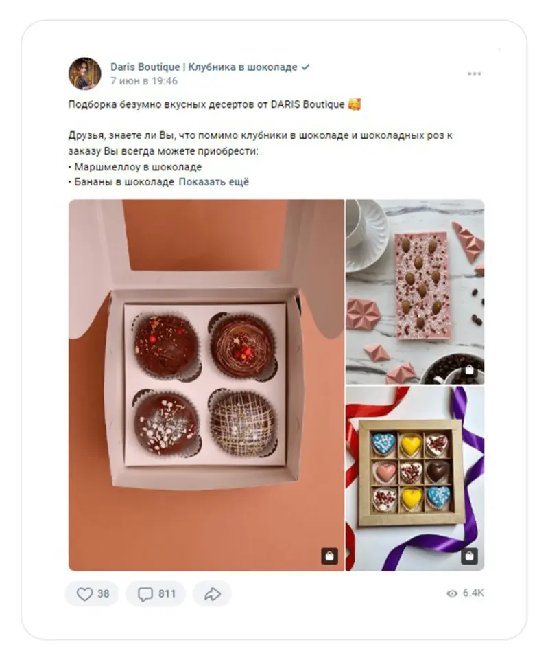 Качественные фотографии. Уделять внимание качеству фотографий сладких подарков. Например, делать снимки на однородном фоне, чтобы акцент был на букете.