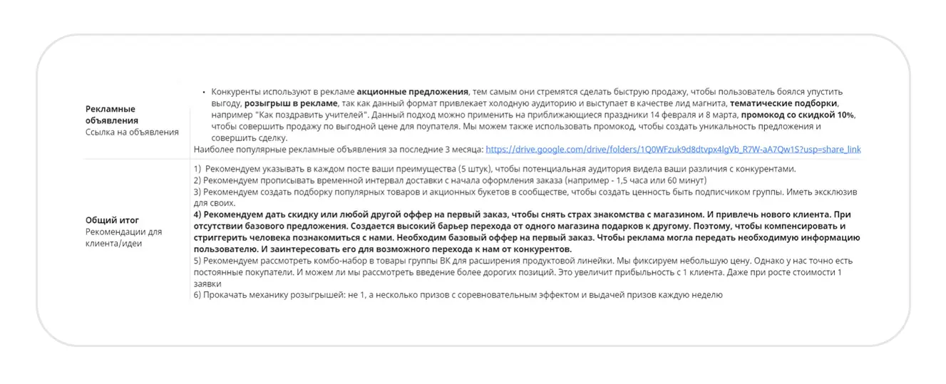 Рекомендации по продвижению для заказчика, которые составили на основе анализа конкурентов: