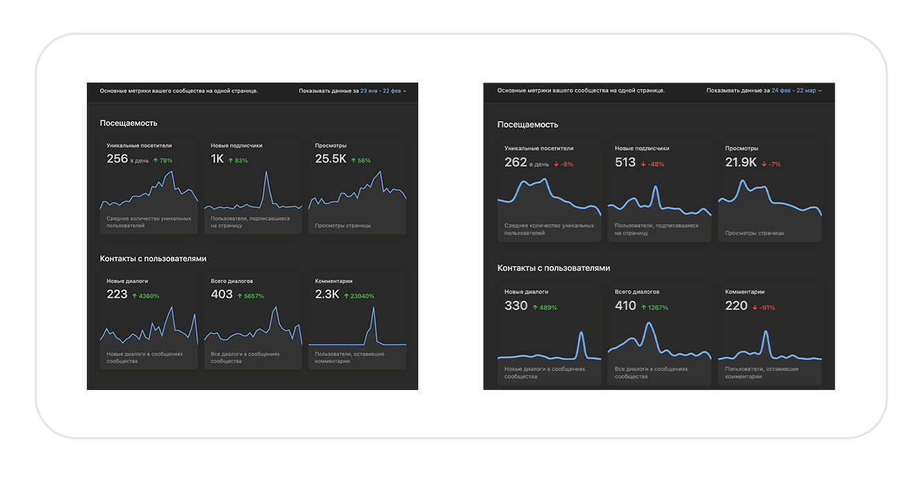 Общая динамика показателей из сообщества ВКонтакте после второго месяца работы: