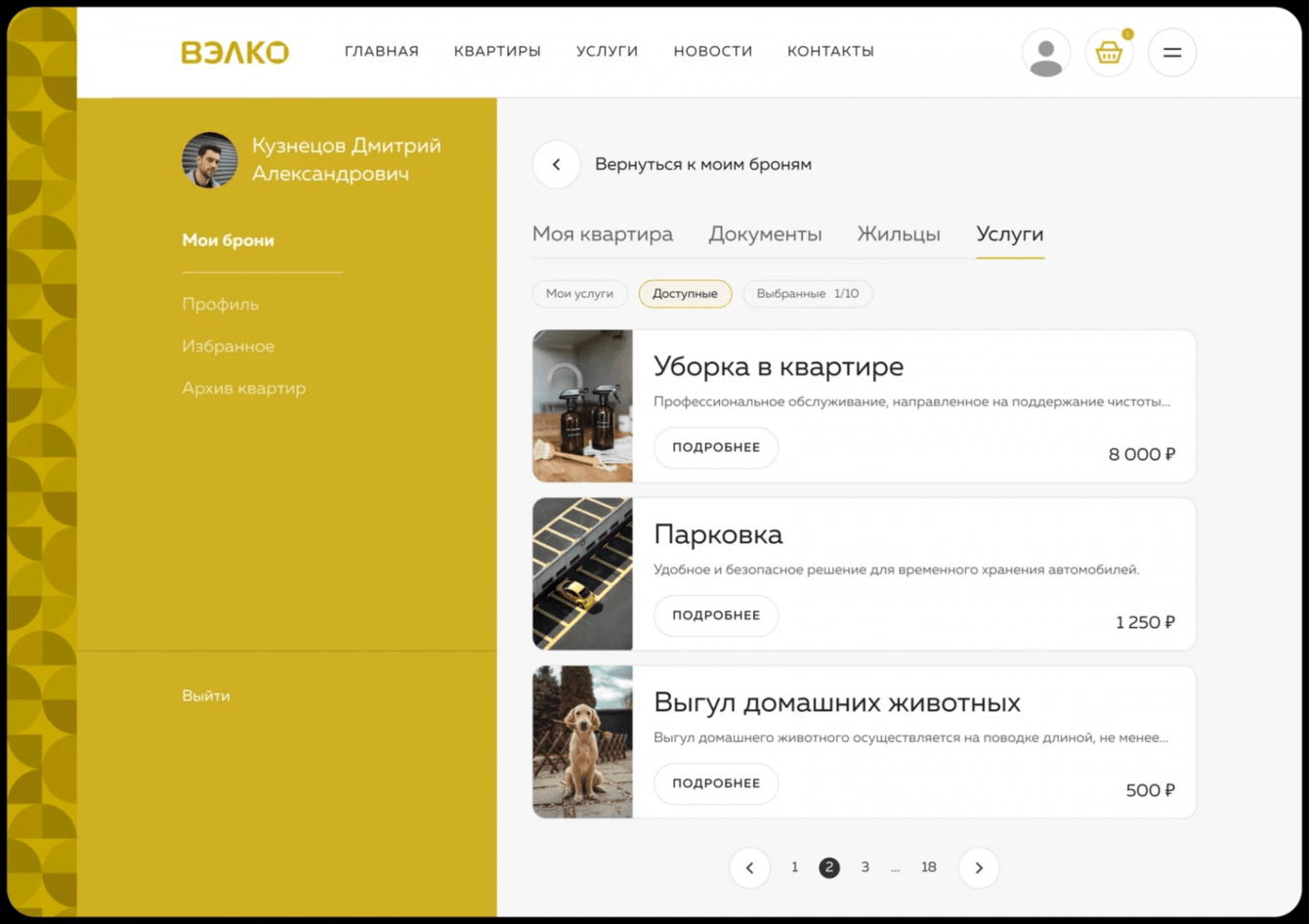 — Заказать дополнительные услуги. Забронировать подземную парковку или попросить убрать квартиру.