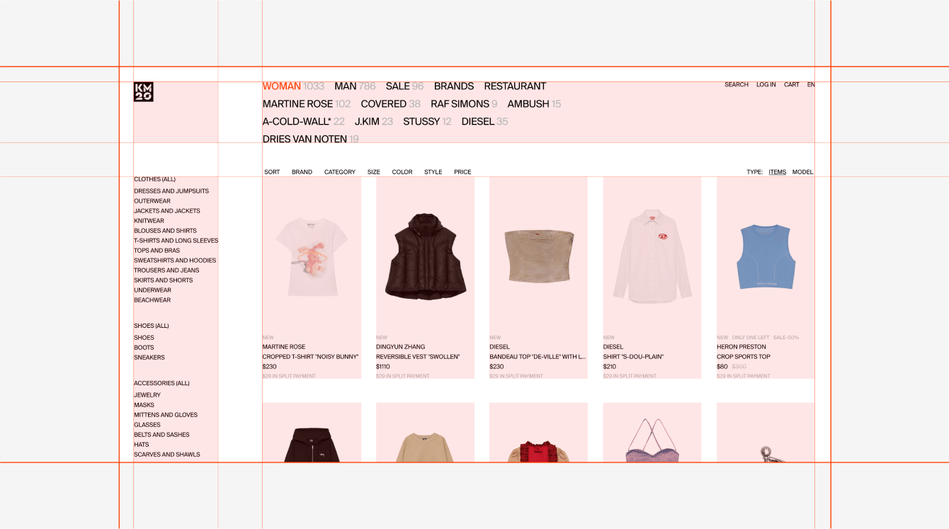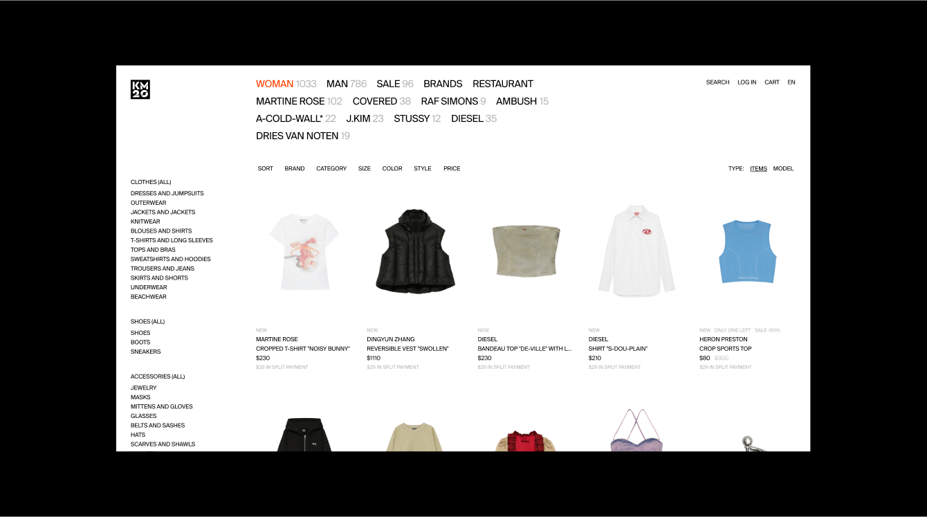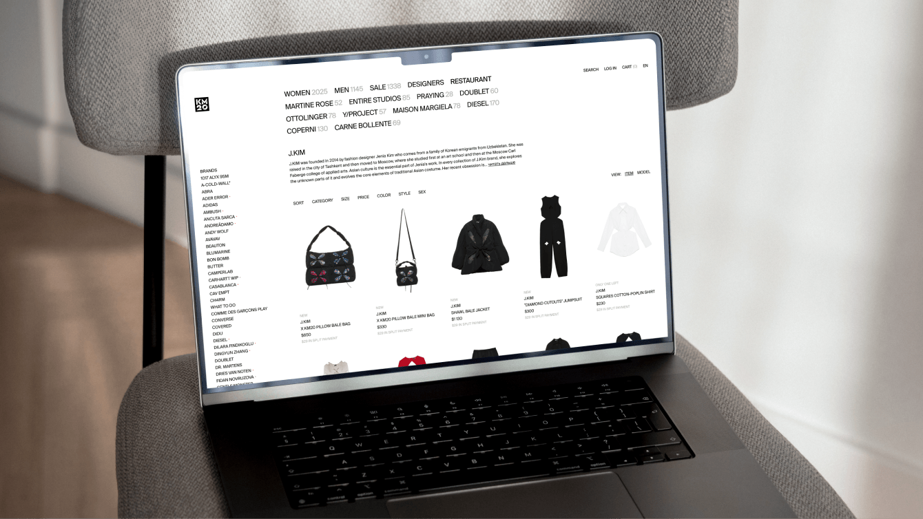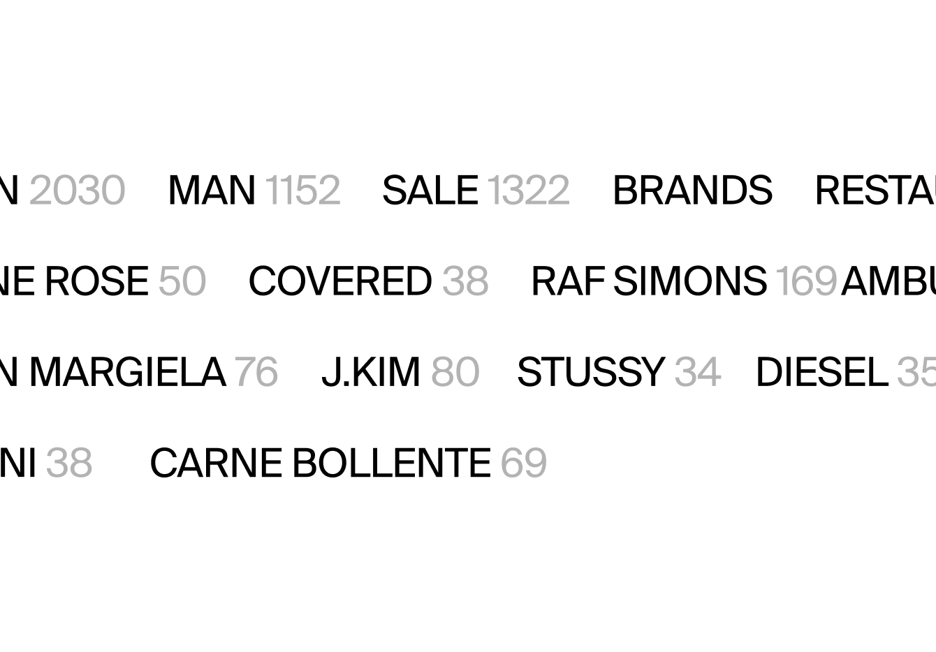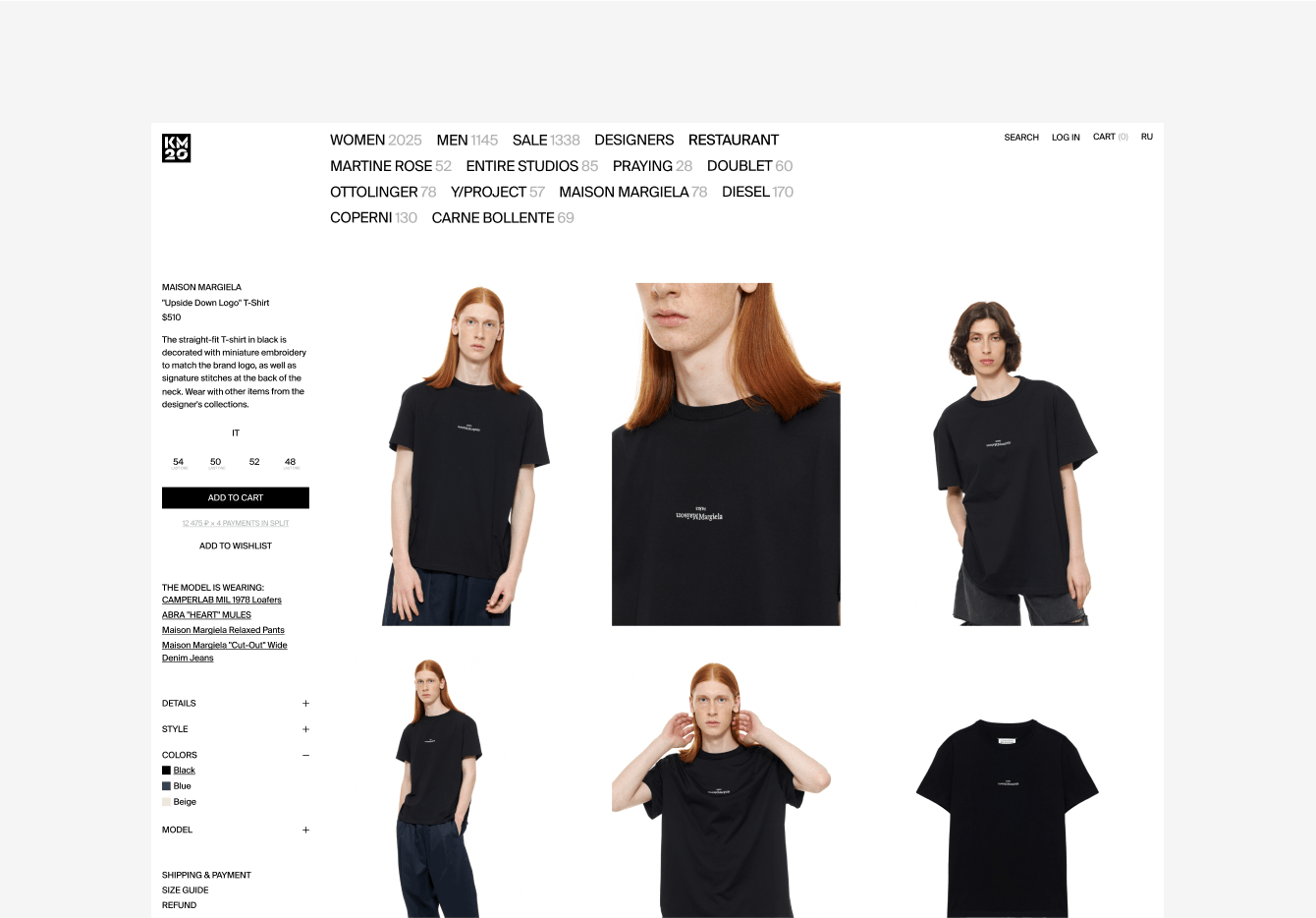 Часто в КМ20 приходят за конкретными брендами — Maison Margiela, Jasquemus, VETEMENTS, ADERERROR и др. Мы закрепили меню брендов в левой части главной для быстрого доступа к ним.