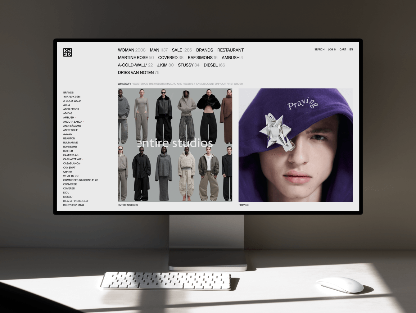 В этом проекте мы объединили нашу дизайн-экспертизу и глубокое понимание ДНК КМ20 как глобального и знакового бренда в своей нише. Результатом стало создание сайта, который демонстрирует идеальный баланс между функциональностью и эстетикой. В новом сайте лаконичный минимализм встречается с яркой индивидуальностью, а логика навигации интуитивно проста, даже для нового пользователя.