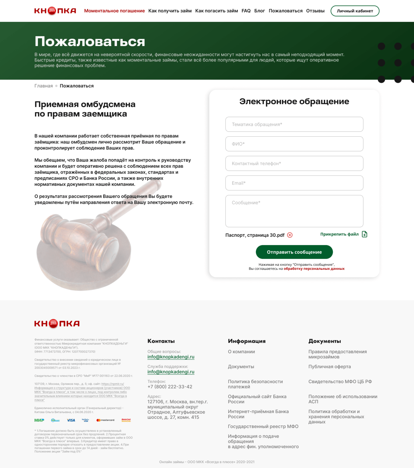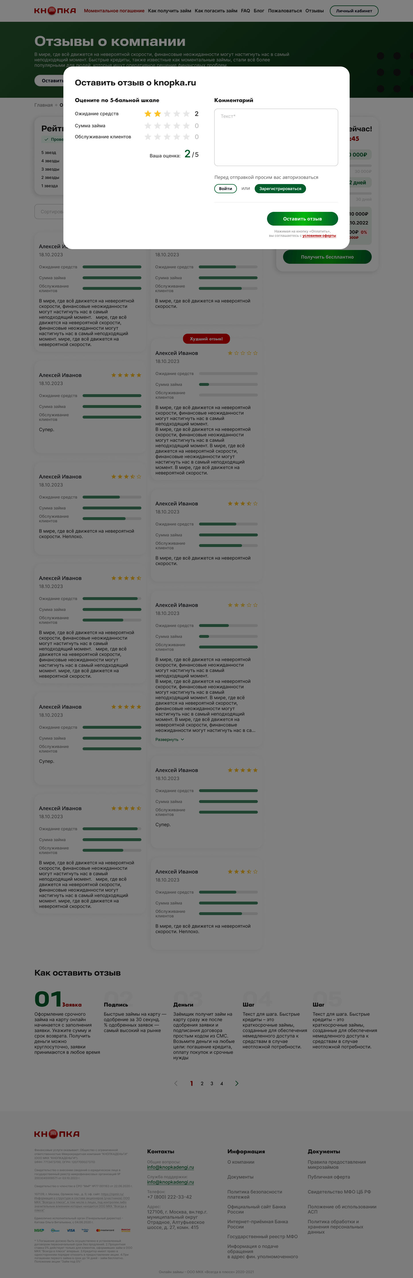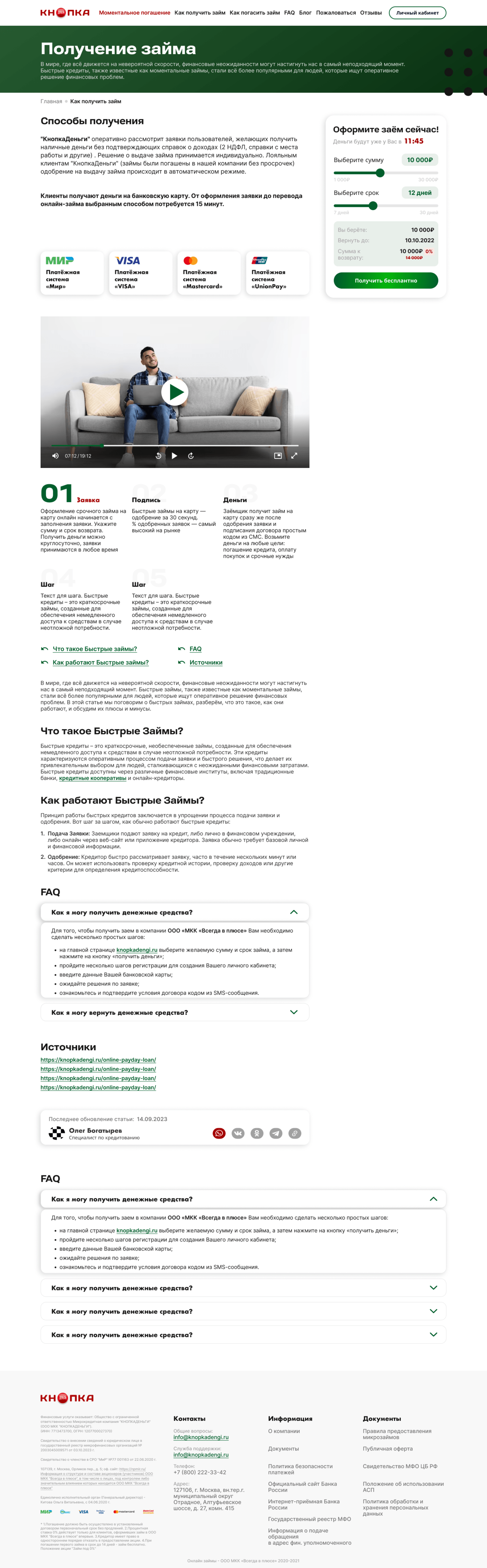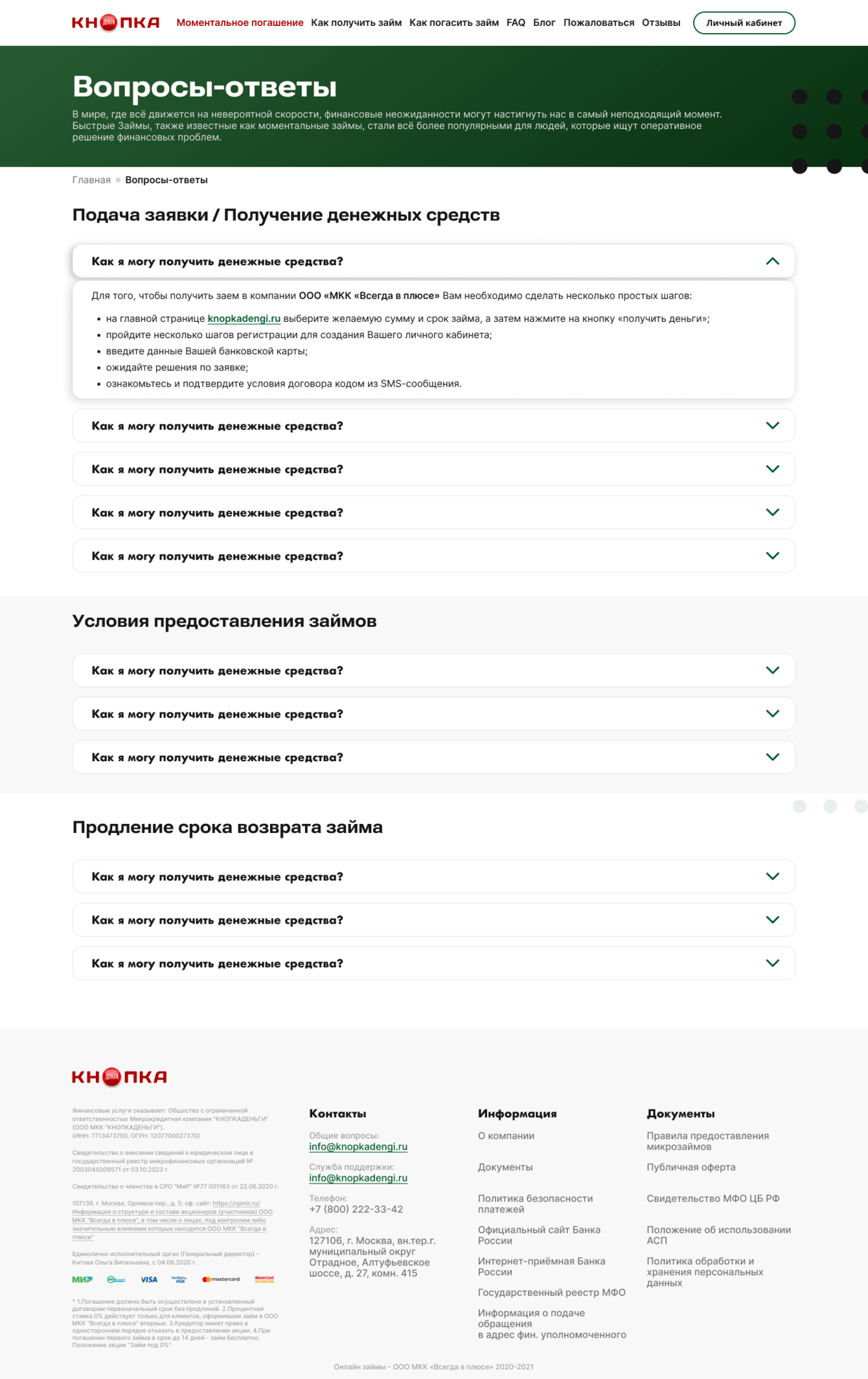 — Определены основные страницы: Главная, Вопрос-ответ, Получение займа, Погашение займа, Новости, Статьи, Отзывы, Жалоба, Моментальное погашение.