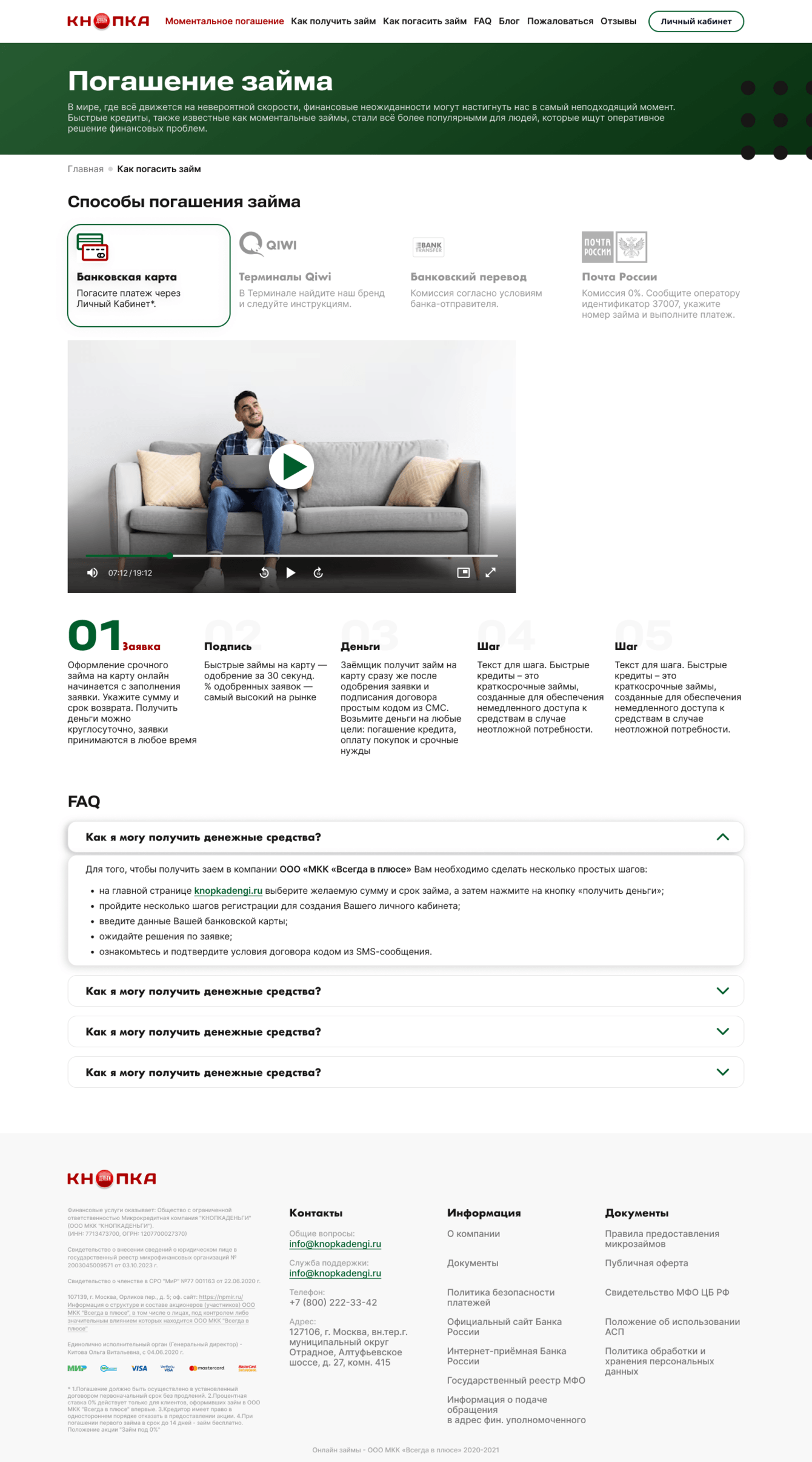 — Как получить / погасить займ: пошаговая визуализированная инструкция, поддержка повторяющихся блоков (оплата, контакты, частые вопросы).