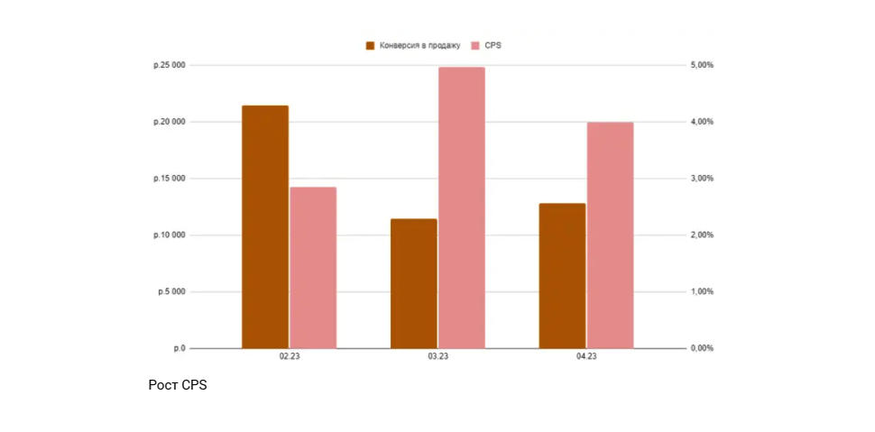Увеличение стоимости лида за счёт покупки более дорогого трафика дало свои плоды: более качественный трафик показал более высокий показатель конверсии в покупку.