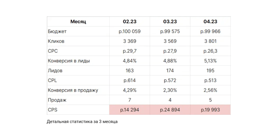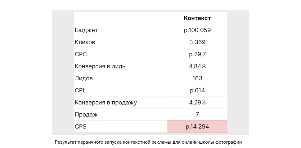Высокая стоимость лида и ещё более высокая стоимость продажи: платить за купившего клиента больше 14 294 рубля при среднем чеке 19 900 рублей заказчику явно не хотелось.