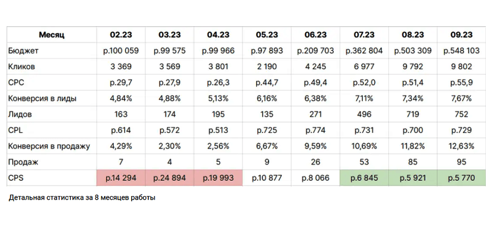 ● Внедрили процессы регулярной оптимизации и масштабирования рекламных кампаний на основе передаваемых данных о продажах.