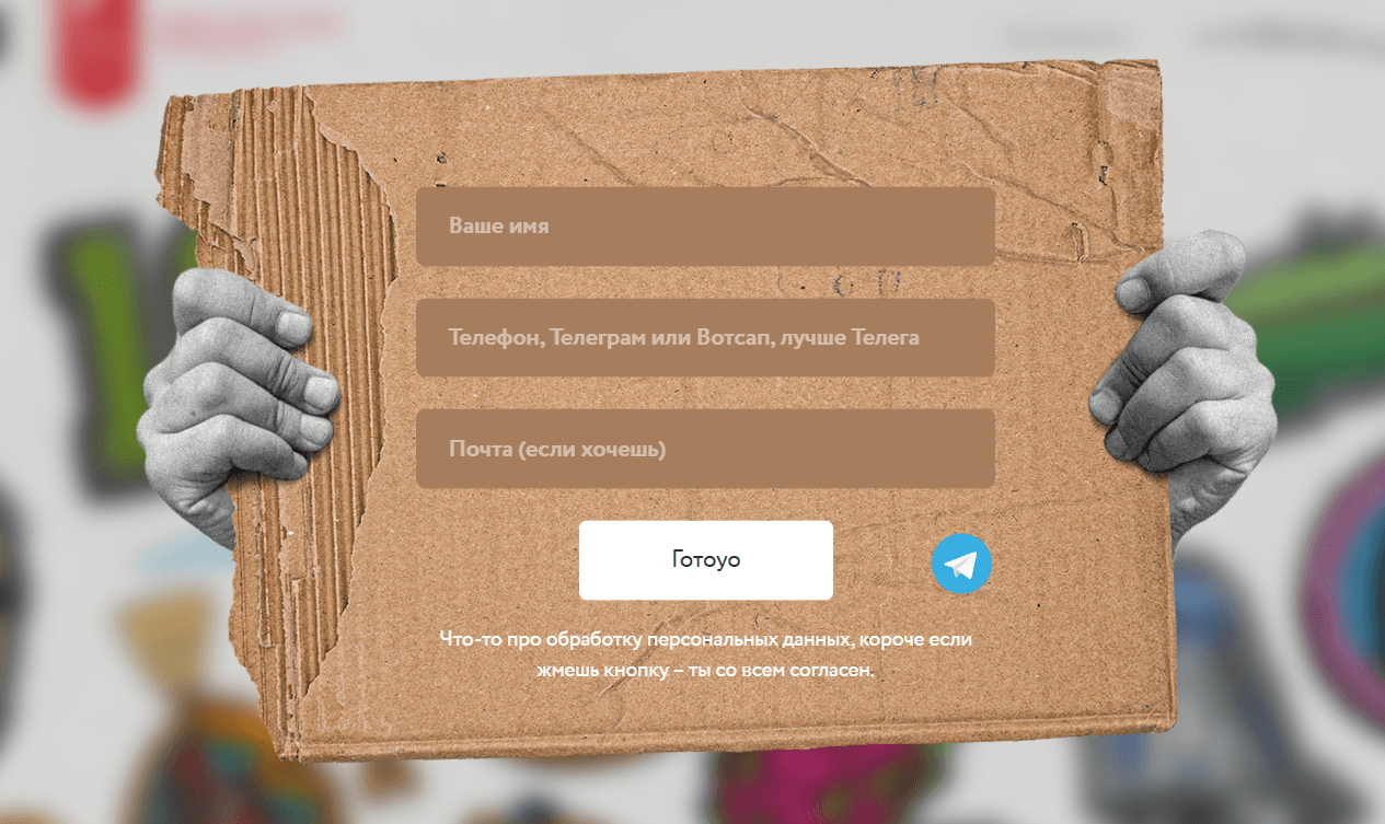 Общей идеей было использование различных мемных картинок и gif-анимации, для предания динамики сайту, плюс в процессе использовалось довольно много возможностей Тильды, в плане создания различных анимированных эффектов при скролле и движении мыши.