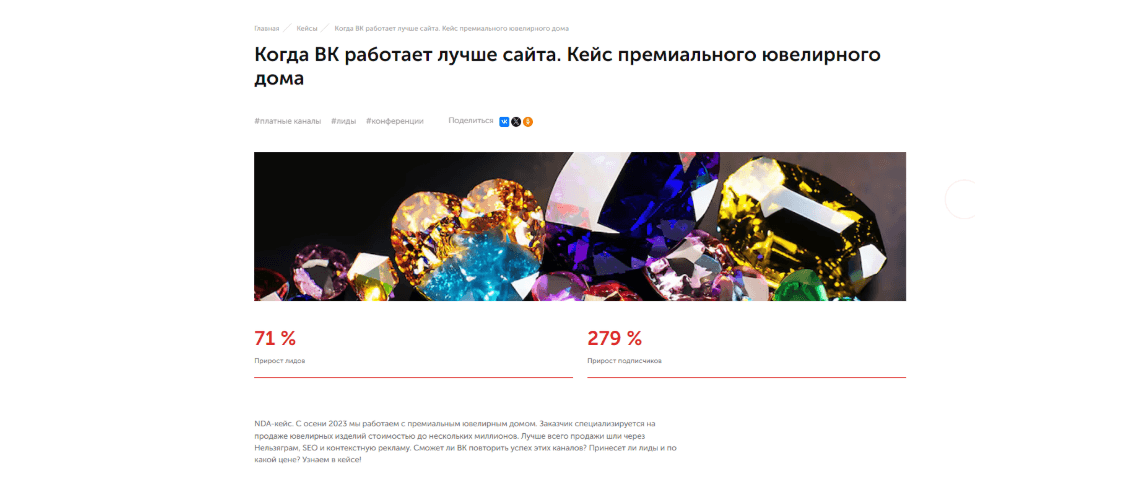 Также стоит сказать о SEO как способе дистрибуции. Если по теме есть поисковый спрос и можно получить посетителей из поиска — конечно, мы это делаем. Оптимизируем публикации — вставляем ключевые слова в заголовки и метатеги, раскрываем интенты. Благодаря этому многие статьи и кейсы становятся вечнозеленым контентом и приносят нам трафик и конверсии долгие годы.