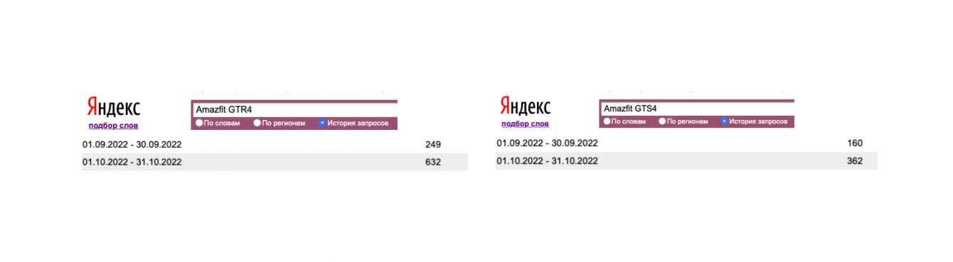 Статистика Wordstat Yandex по запросам новой линейки в период проведения проекта:
