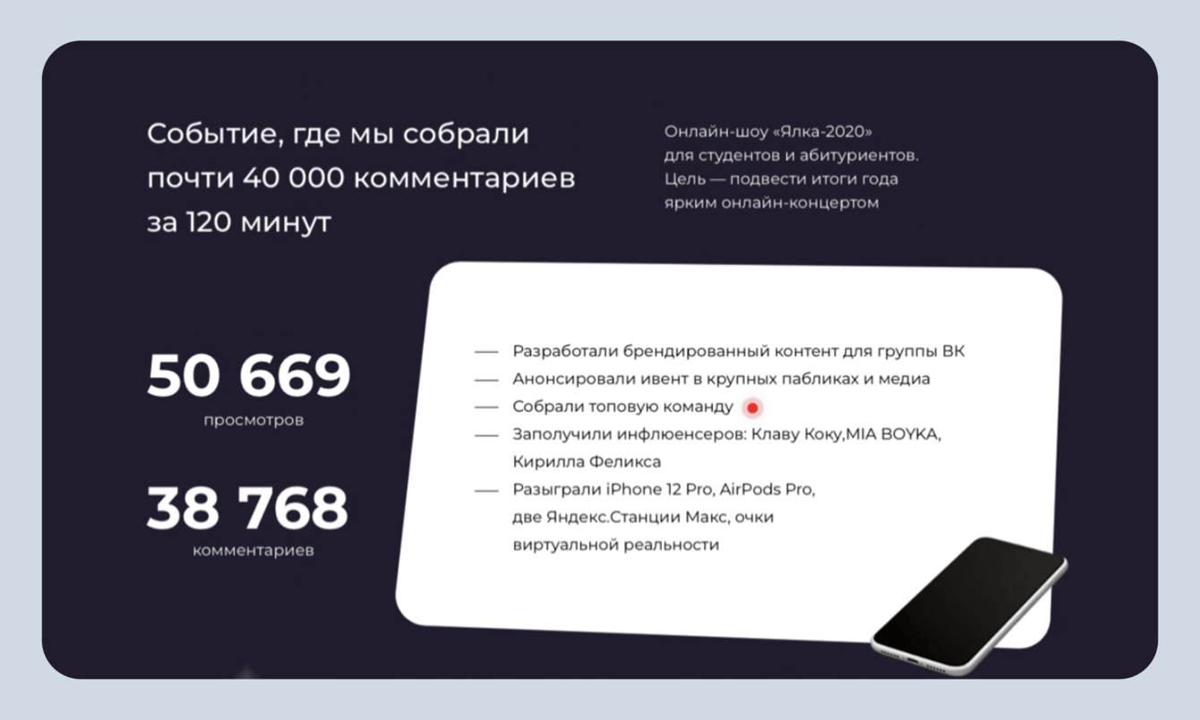 Сильно сократили кейсы. Заказчик не хотел полотна текста, поэтому информацию важно было подать кратко, чётко и по существу.