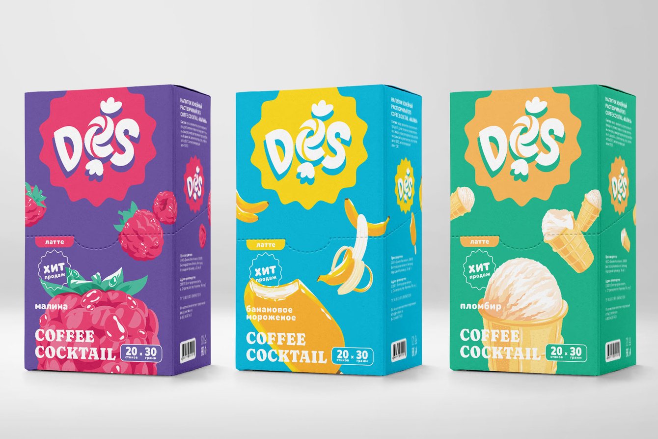 За разработкой атрибутов своего нового бренда к нам обратились производители растворимых кофейных напитков. Под эгидой бренда — коктейли с разнообразными вкусами, на основе кофе.