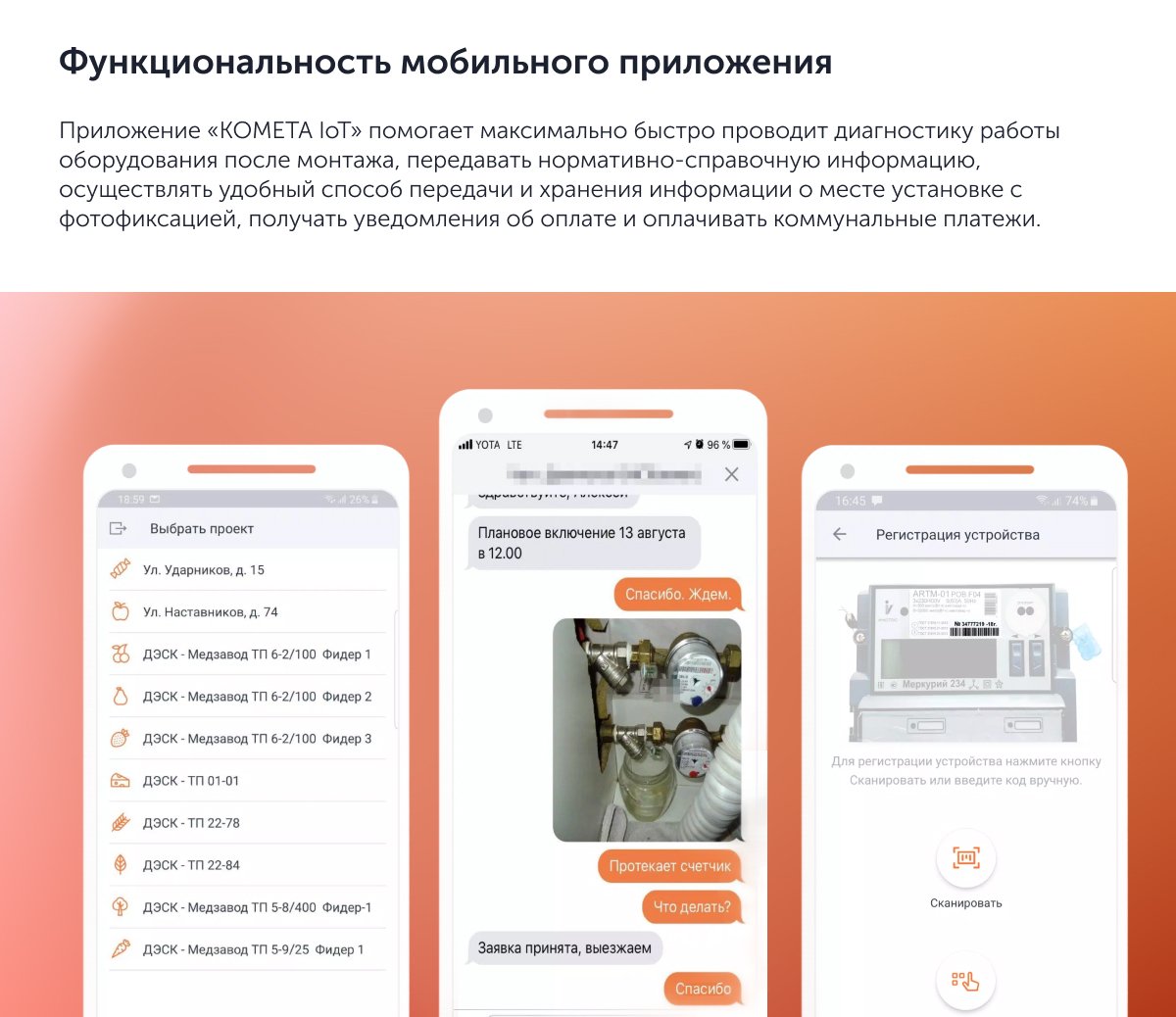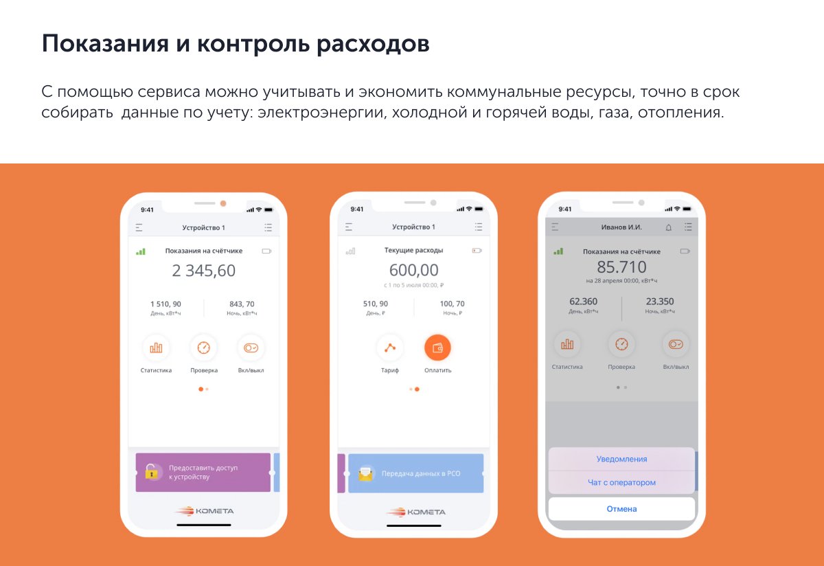 Разработать сервисное мобильное приложение на платформах iOS и Android, позволяющее подключать и проводить диагностику IoT-устройств, передавать показания и оплачивать выставленные счета за ЖКХ.