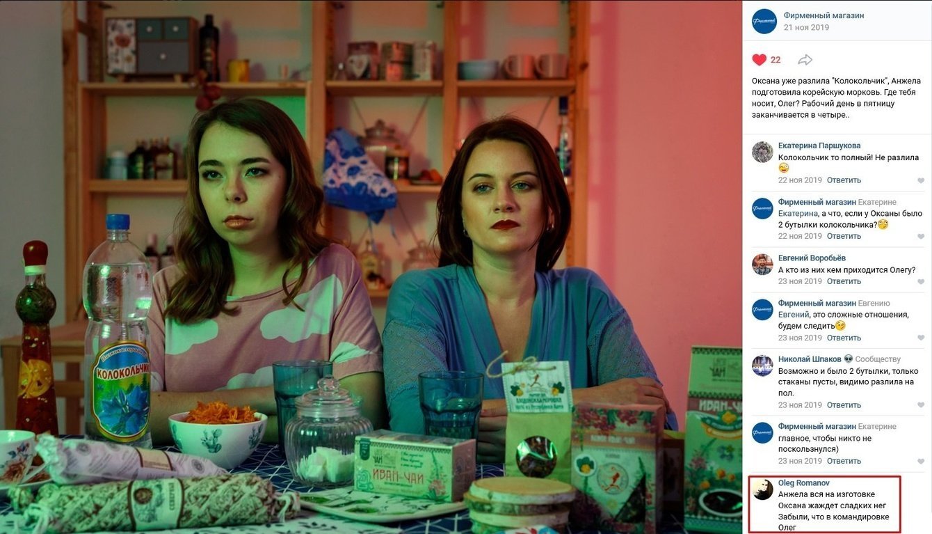 Особое место в продвижении «Фирменного» заняли неалкогольные региональные специалитеты, поскольку с их помощью можно было без проблем проходить модерацию ВКонтакте и работать с уникальностью торговой сети на фоне федеральных игроков — «Магнита», «Пятёрочки», «Красного и Белого», конкурировать с которыми региональная сеть, конечно, не имеет возможности. Мы сделали акцент на тех продуктах, которые не продаются в каждом супермаркете: оленина с севера Коми, Ыбский чай, засахаренная клюква.