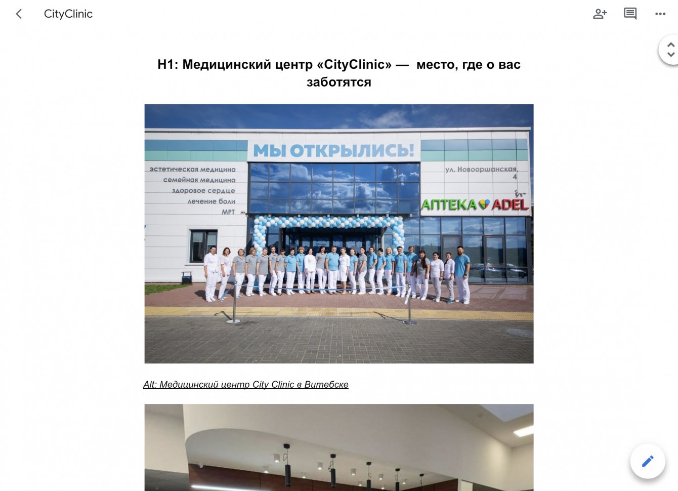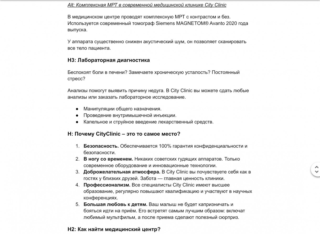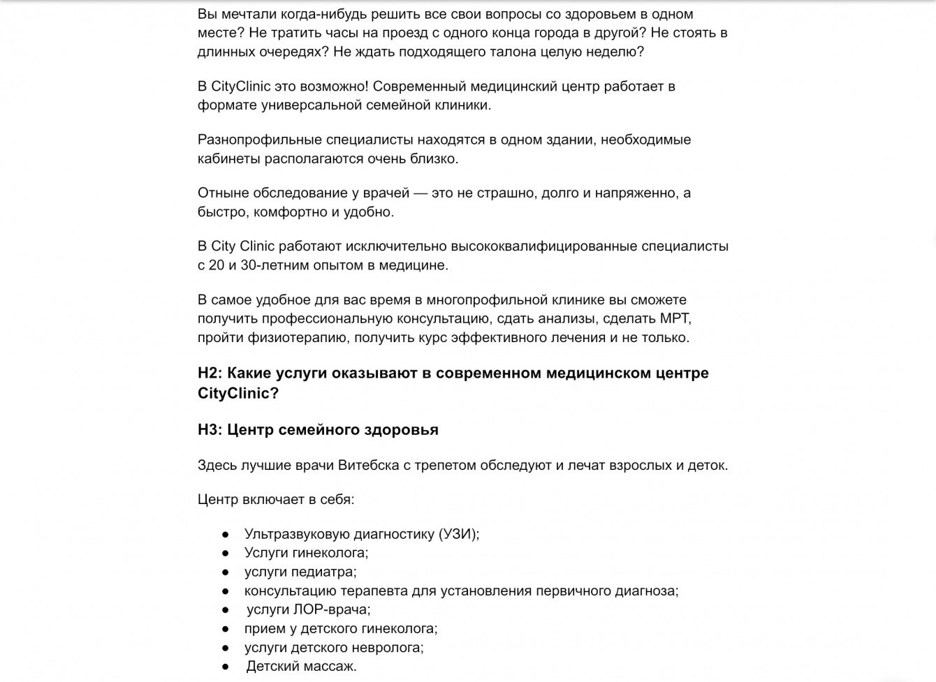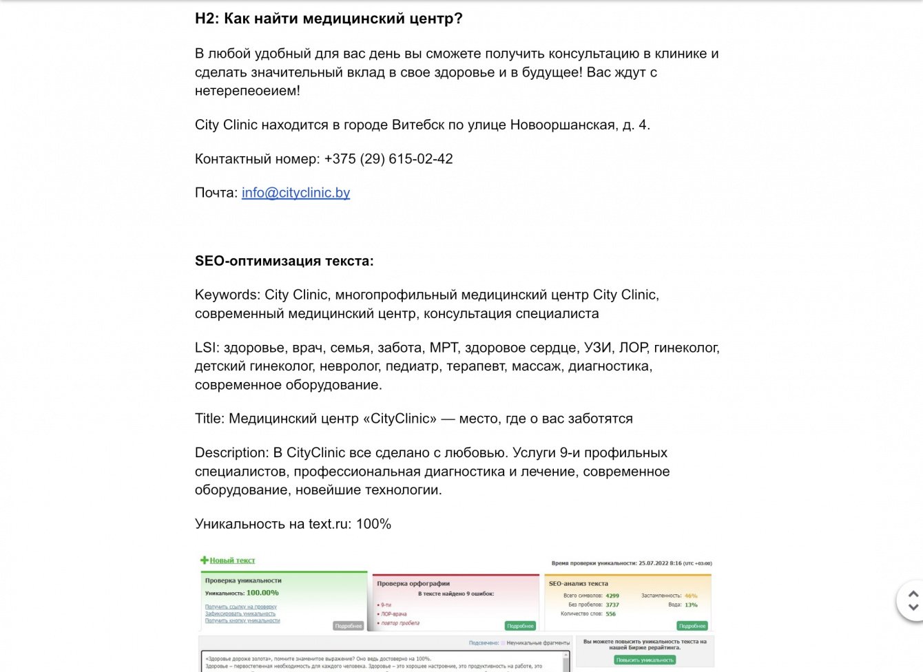 ✔️ Задача: сделать коммерческую статью о больнице CityClinic. Количество знаков б.п — 4500. SEO-оптимизация. Уникальность — 100%.