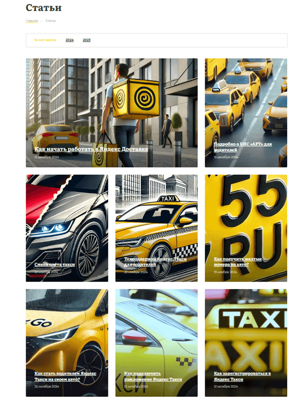 У потенциальных клиентов возникает множество вопросов о заработке, преимуществах, рисках, способах подключения к такси и т.д. Поэтому в тематике важен информационный раздел, который будет отвечать на вопросы пользователей.