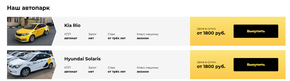 Было решено внедрить на страницах аренды листинги автомобилей, доступных водителям.