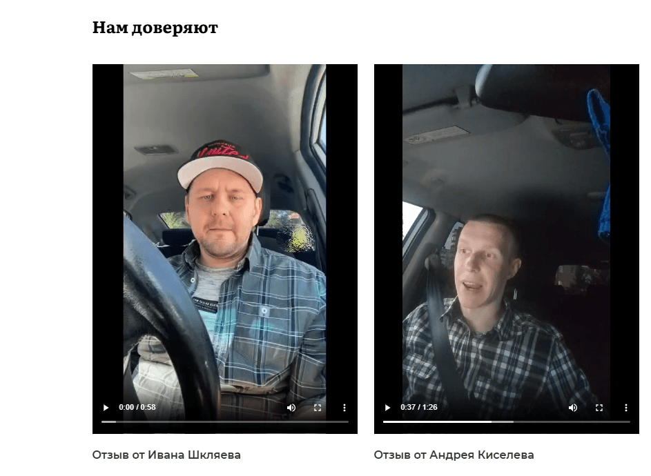 Чтобы сформировать макет главной страницы, мы запросили у клиента фото его автомобилей и видеоотзывы водителей.
