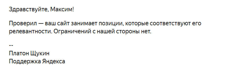 Самое загадочное в этой истории – ответ от Яндекса ровно через месяц после запроса (и уже после того, как начался рост):