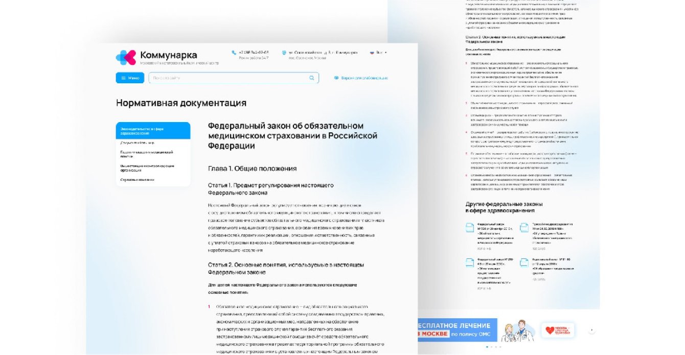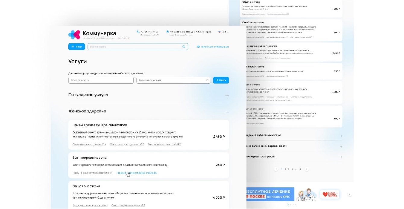 Из-за огромного объема информации на таких сайтах часто получается путаница, от которой в конечном счете страдает пользователь. Старый сайт ММКЦ «Коммунарка» — не исключение. Поэтому на проекте для этого заказчика мы собрали структуру заново и максимально улучшили юзабилити.