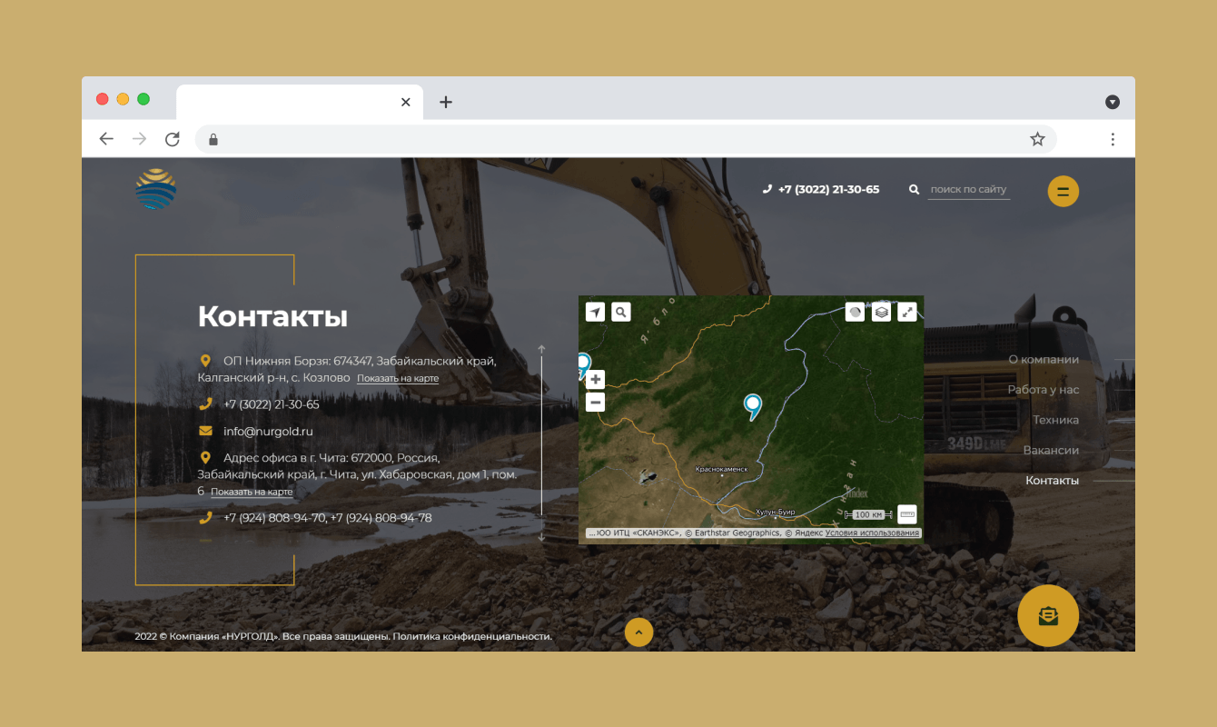 1. Компания «Нурголд» добывает золото для пополнения государственных запасов, а значит, и для повышения благосостояния общества. Перед нами стояла задача создать сильный корпоративный ресурс, утверждающий позиции компании на отечественном и международном рынке, при этом показать сильные стороны компании – использование передовых технологий и новейшего оборудования.
