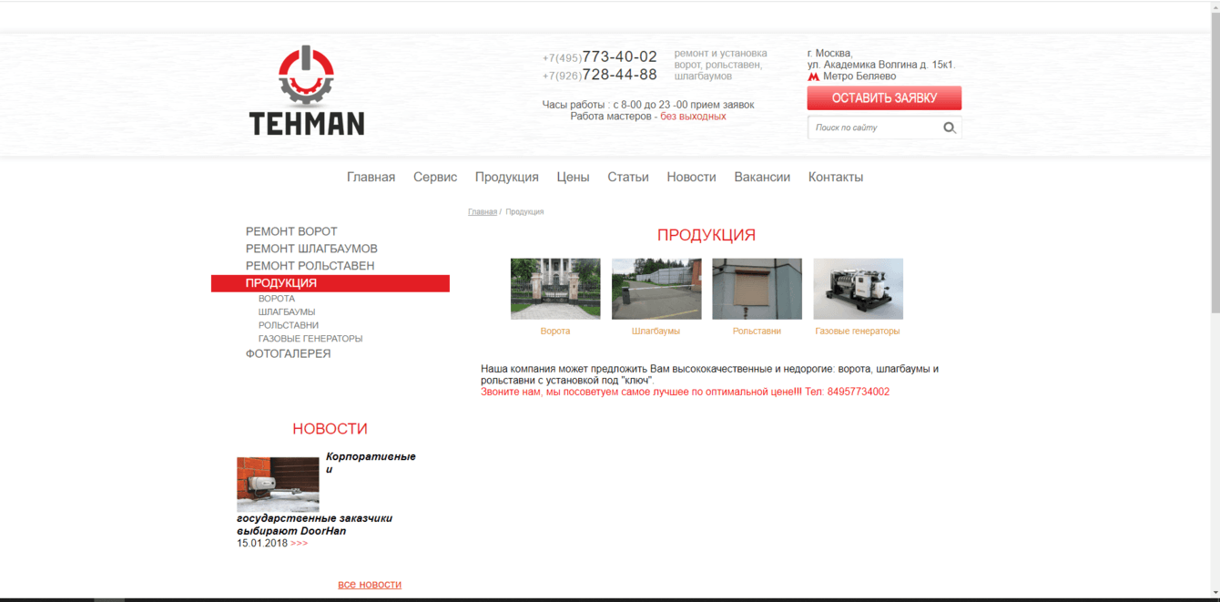 Информационные блоки компании, ее деятельности и предоставляемых услугах.