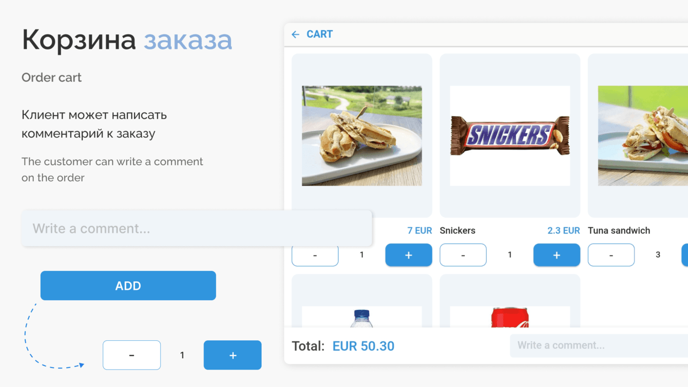 Создать более комфортные условия для отдыха позволяет встроенный в приложение функционал, позволяющий осуществлять заказ напитков и снеков.