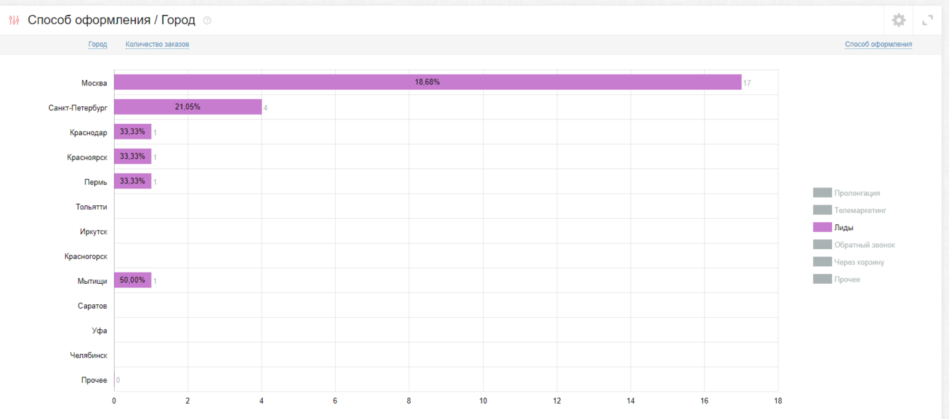 Рядом с каждой строкой серым текстом справа посчитана общая сумма лидов.